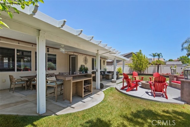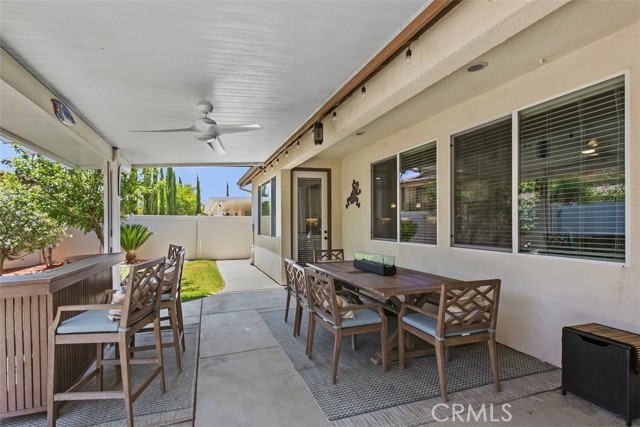 Nestled in a serene cul-de-sac of Spencer’s Crossing, this stunning single-story home on oversized lot offers a blend of modern amenities & stylish design. From the moment you arrive, you'll notice the pride of ownership apparent in this home’s curb appeal including gated entry & widened driveway & walkways. Upon entering you're greeted with gorgeous bamboo flooring, crown molding throughout & an open floor plan connecting the living room, dining area, bar & kitchen, creating a spacious & airy environment that is both functional & aesthetically pleasing. On one side of the home is a laundry room with sink & storage as well as the primary ensuite complete with walk-in closet, dual sinks & an access door to the backyard. On the other side of the home are 2 additional bedrooms, a full bathroom with dual sinks & a versatile bonus room. Bonus room can easily be converted to a 4th bedroom with the addition of a door & closet or customize it to suit your needs, whether it be a home office, gym, or playroom. The kitchen is a chef's dream, featuring a large center island, sleek quartz countertops, white cabinets & stainless steel appliances providing ample workspace & a touch of elegance to the heart of the home. This home is not only beautiful but also equipped with practical & high-tech features to enhance your daily living. The PAID SOLAR SYSTEM reduces energy costs & promotes environmental sustainability. For peace of mind, the Ring doorbell & security system offer advanced surveillance ensuring that your family & property are protected. The whole house filtration system delivers clean water to every faucet, contributing to a healthier lifestyle. Step outside to the gorgeous backyard with fruit trees, large covered patio & cozy fire pit perfect for entertaining guests or enjoying a quiet evening under the stars. The home also features 2 garages; one is a 2-car garage & the other is a single car garage on the opposite side of the home currently used as a home gym. Possible option of converting this to additional living space/in-law suite, etc . The community of Spencer’s Crossing offers premier amenities including a resort style junior Olympic pool, clubhouse, sports fields, playgrounds, BBQ area & more. There’s plenty of opportunity to get to know your neighbors & build a community here with the year round family activities offered by the HOA. With its combination of luxury, convenience, and security, this residence is the perfect place to call home.