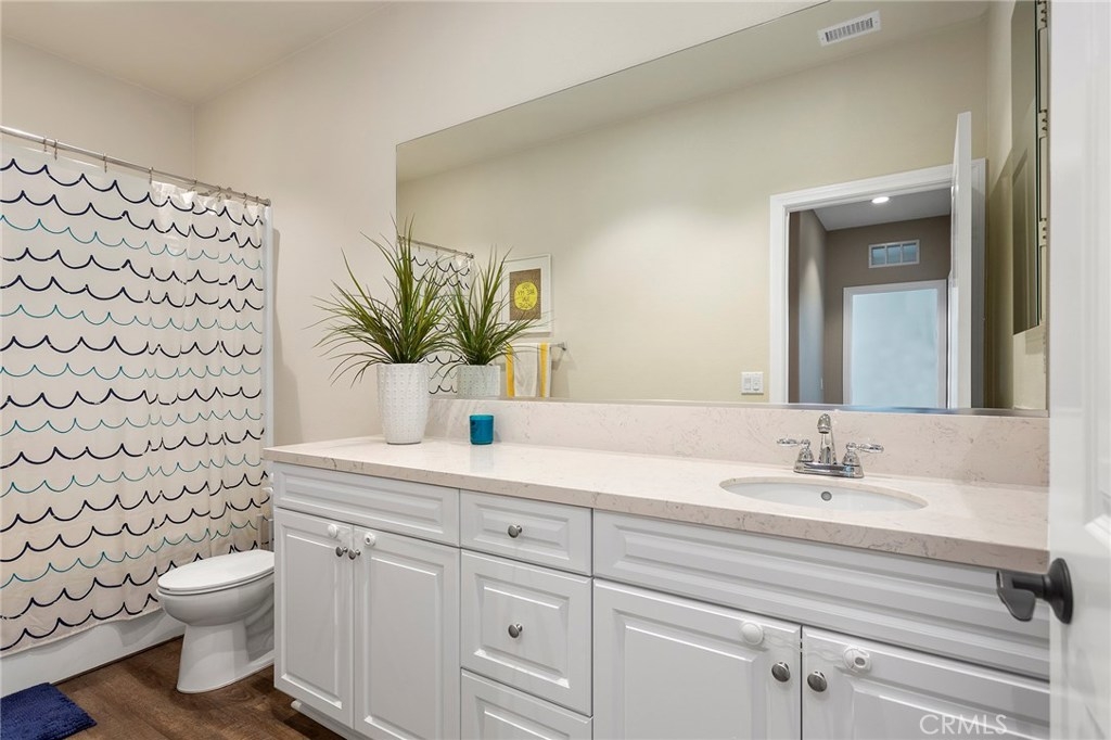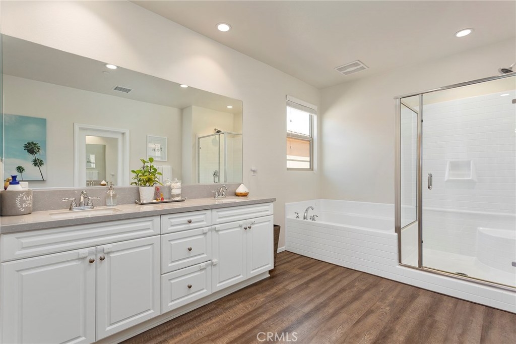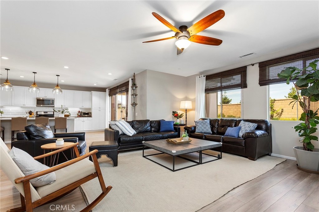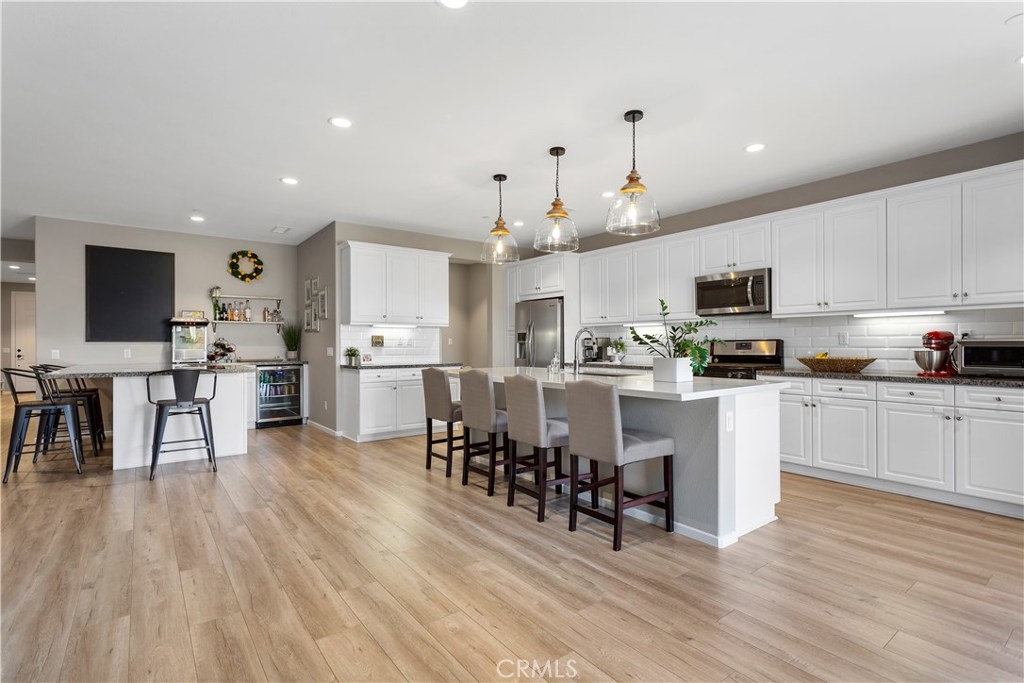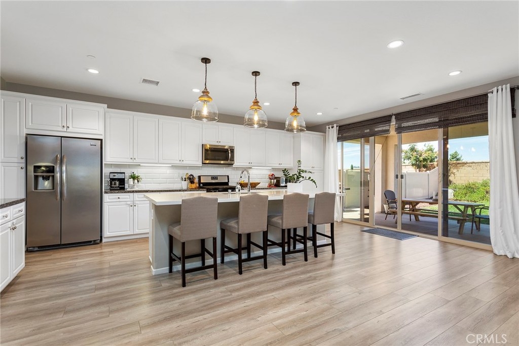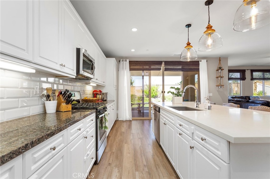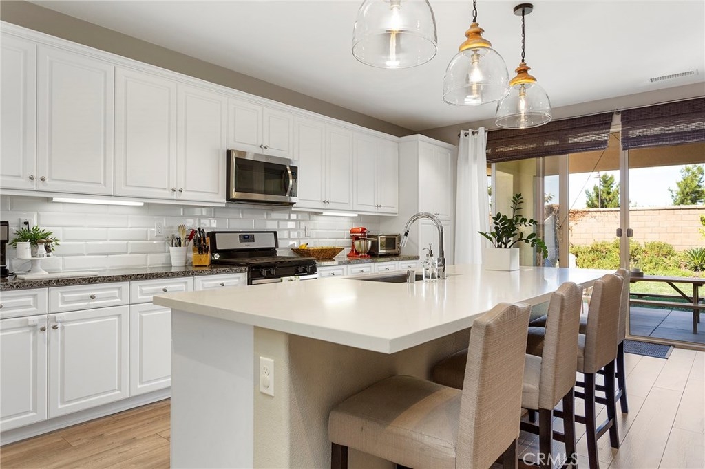 This is the super clean, single level home you have been searching for. Flowing, open-concept floorplan, built by Brookfield Homes, in the sought after Spencer’s Crossing Master Planned Community. Convenient cul-de-sac location. This beautiful 4Bd/2.5 bath home is in like-new condition and has all the convenient features you need. Enormous kitchen with plenty of beautiful, light and bright white cabinets, center island, separate large bar area with wine/drink cooler, granite and quartz countertops, and stainless appliances. Step right out a sliding glass door to a California room and landscaped rear yard with a beautiful lawn. Open concept great room provides plenty of room for family gatherings, entertaining, and dining. When it’s time to rest, there are 4 spacious bedrooms. A large master suite includes an enormous walk-in closet, separate shower and tub, and a beautiful stone countertop. Don’t forget the 3-car tandem garage and laundry room/mud room, also just off the kitchen area. Fully landscaped large lot. Virtually next door to community parks and highly desired Murrieta Schools. Five- minute walk to Lisa J. Mails Elementary and Dorothy McElhinney Middle School. Just minutes from the 215 and 15 fwys as well as the Temecula Wine Country.